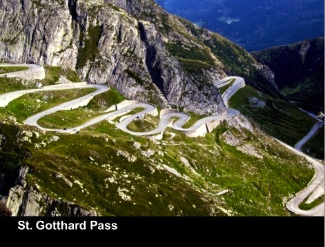 This week for VeloViews I’m featuring a climb that appears frequently during the Tour of Switzerland, the St. Gotthard Pass. At 2,106 meters (7,000 feet) and a part of the Alps that crosses over the Saint Gotthard Massif, it connects northern Switzerland with southern Switzerland. As you can see, the climb contains many switchbacks, something that is always fun and challenging to ride.