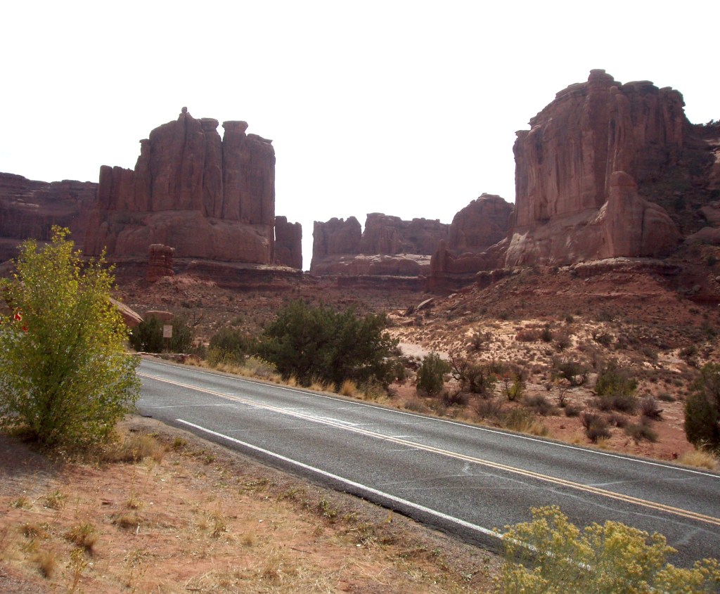 There is one nice descent when first entering the park, which means a steep but short climb on the way out. Just a guess at the grade because I haven’t been back to Arches in a long time, but off I’d say it is close to 8%.